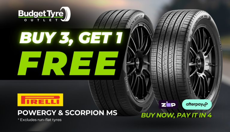 *Valid for Pirelli Powergy and Scorpion MS SUV tyre set purchases at Budget Tyre Outlet stores until 31st March 2026.
